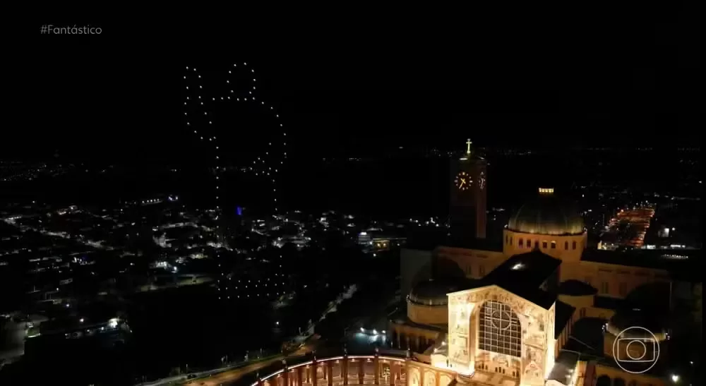 Durante a apresentação, dezenas de drones desenharam no céu imagens que marcaram a trajetória de Francisco, como o momento em que ele se encomendou a Nossa Senhora Aparecida em sua primeira viagem internacional como papa, em 2013.
